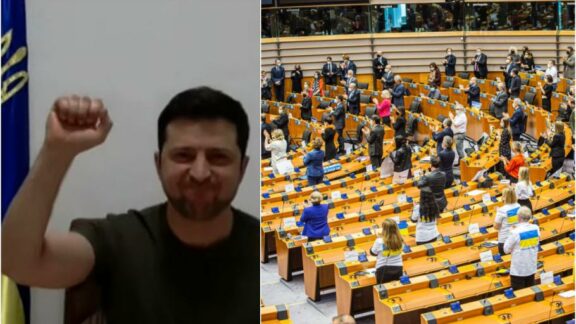 1 martie 2022 (VIDEO) Zelenski, aplaudat în picioare în Parlamentul European: „Demonstrați că sunteți cu noi”