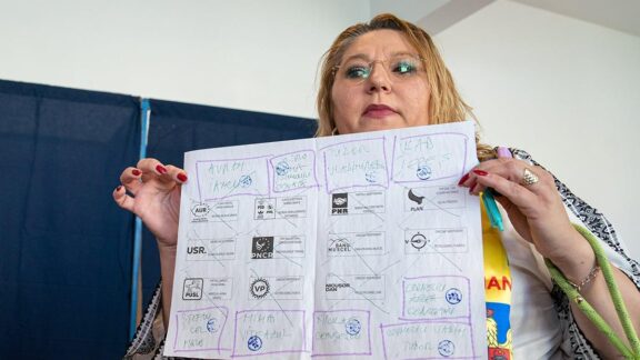 4 mai 2025 Diana Șoșoacă sfidează legea electorală: și-a arătat buletinul de vot modificat cu numele propriu, al lui Ceaușescu și al unor domnitori