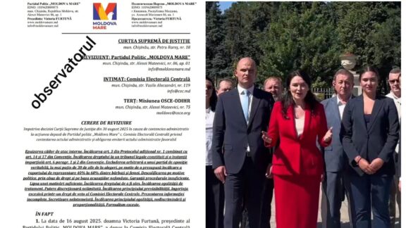 1 septembrie 2025 (DOC) Partidul „Moldova Mare” ar putea reveni în cursa electorală. Observatorul: la CSJ a fost depusă o cerere de revizuire