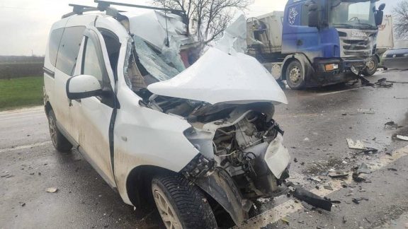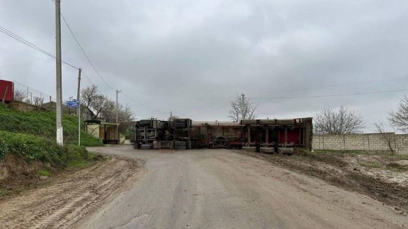 3 aprilie 2026 Un camion cu cereale s-a răsturnat la Giurgiulești: traficul este blocat, circulația redirecționată de poliție