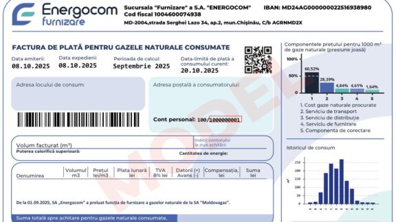 3 octombrie 2025 Începând cu săptămâna viitoare, consumatorii vor primi facturi noi la gaz, emise de Energocom
