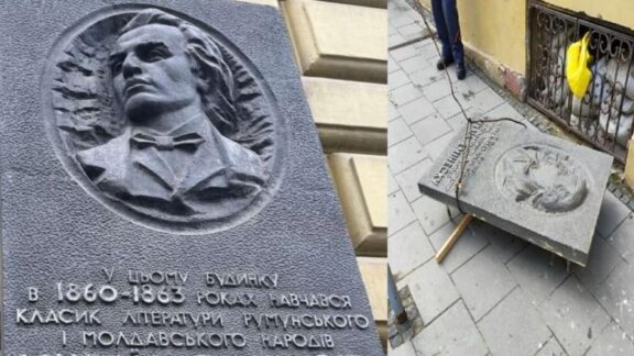 12 aprilie 2025 Cernăuți: Placa memorială cu basorelieful lui Mihai Eminescu a fost demontată temporar
