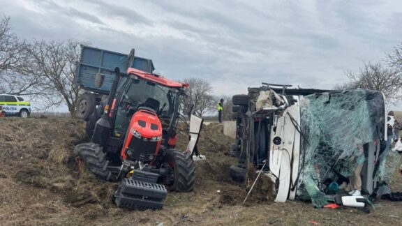 13 martie 2025 (FOTO) Un autocar care transporta 27 de pasageri s-a ciocnit cu un tractor la Ștefan Vodă